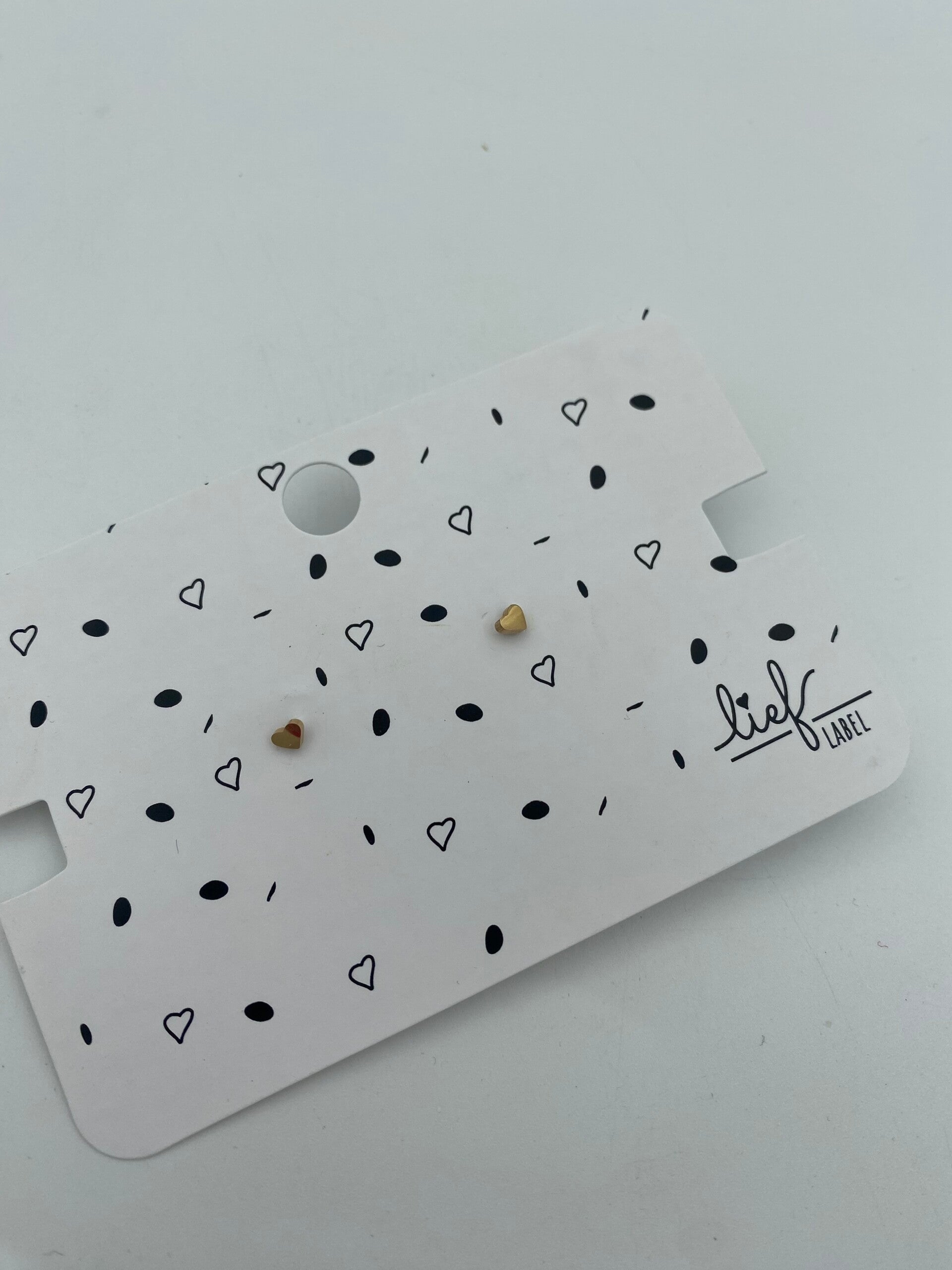 Falling in love! Met deze té leuke hartjes oorbellen raak jij helemaal in een fashionable sfeer. Het hartje is zeer cute om weg te geven maar ook zeker leuk voor jezelf. De oorknopjes zijn gemaakt van Stainless Steel dus deze verkleuren niet.De oorbellen worden als setje van twee geleverd op een trendy kaartje van Lief Label zodat het nóg leuker is om weg te geven.Afmeting: 3x4mm.