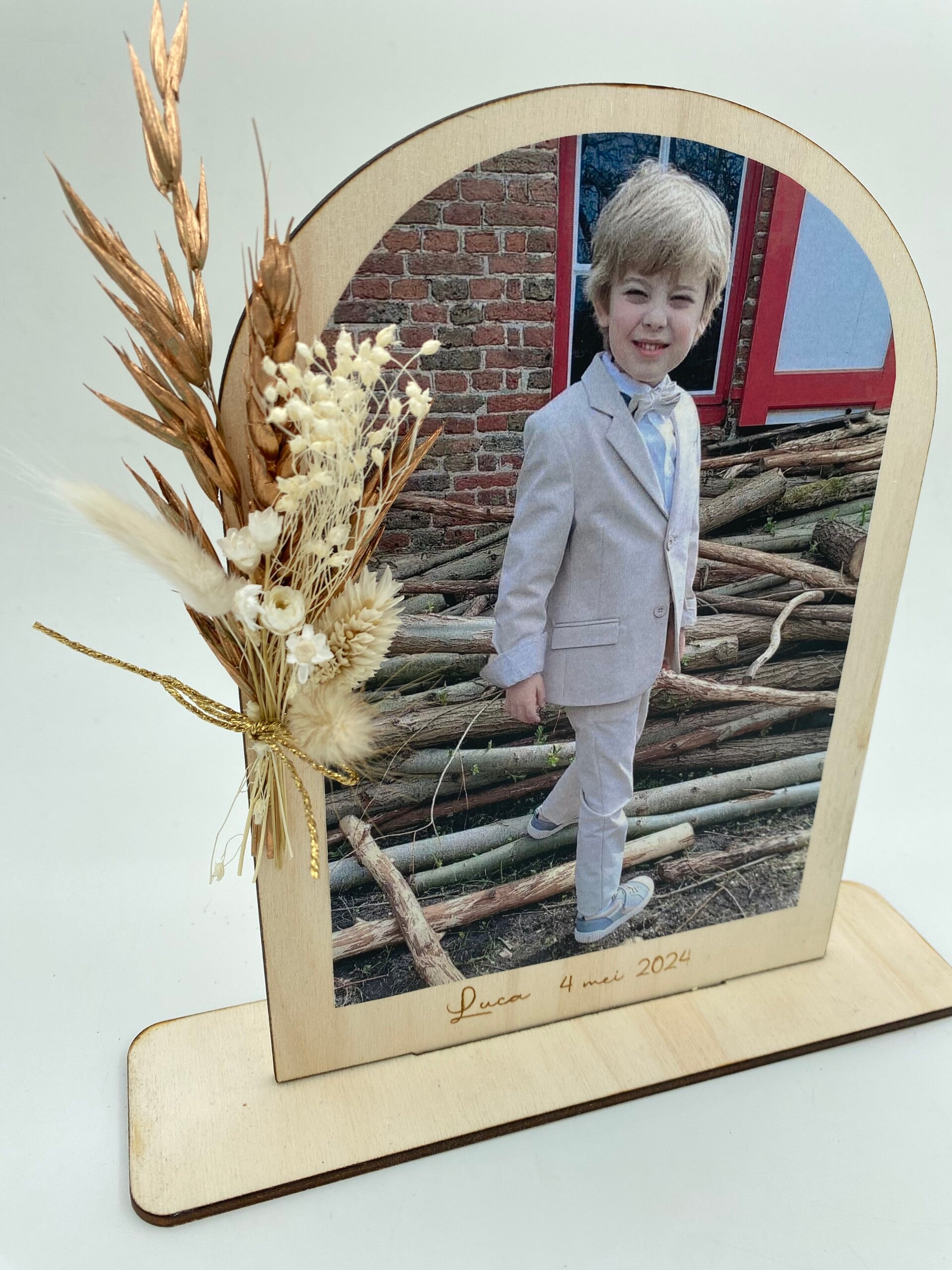 🎀 Deze prachtige boog met foto en gravure zal een echte uitblinker zijn op jouw feest. 💕