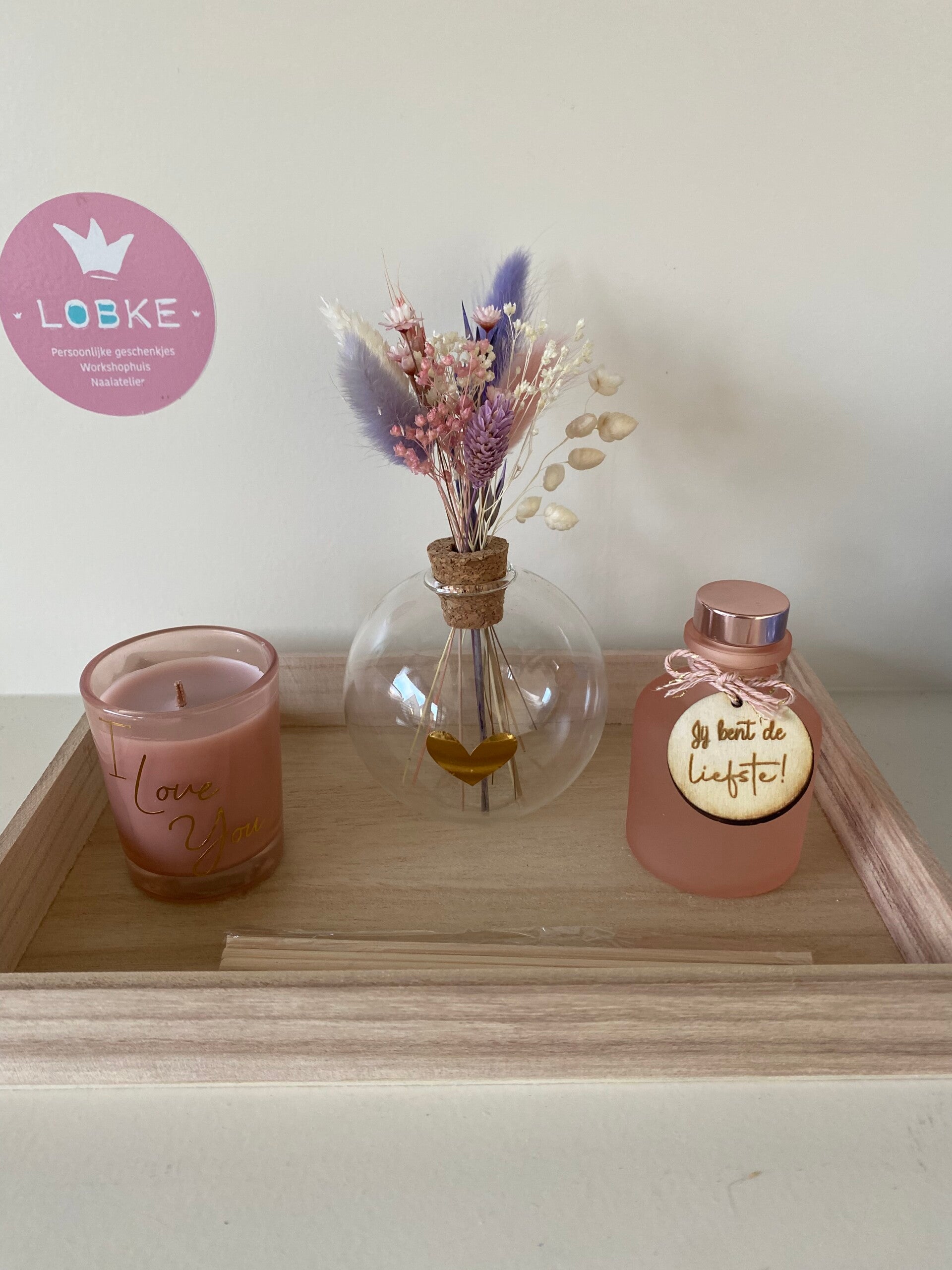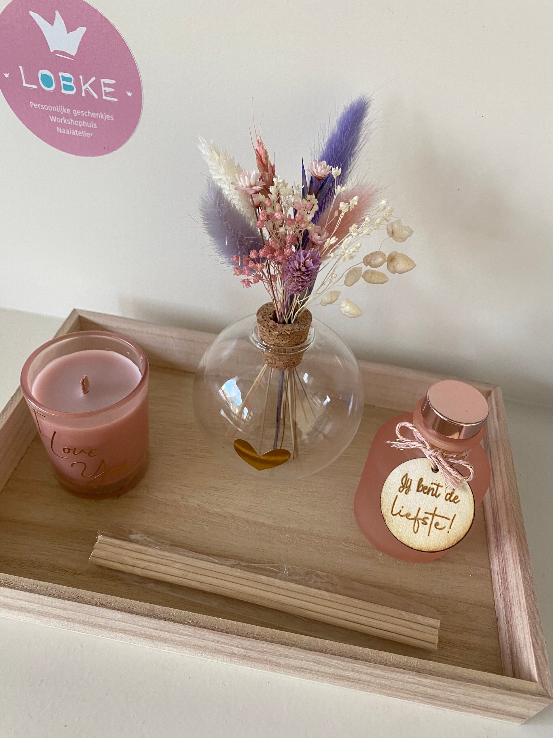 Dit setje bestaat uit 3 topproducten gepresenteerd op een mooi houten dienblad.