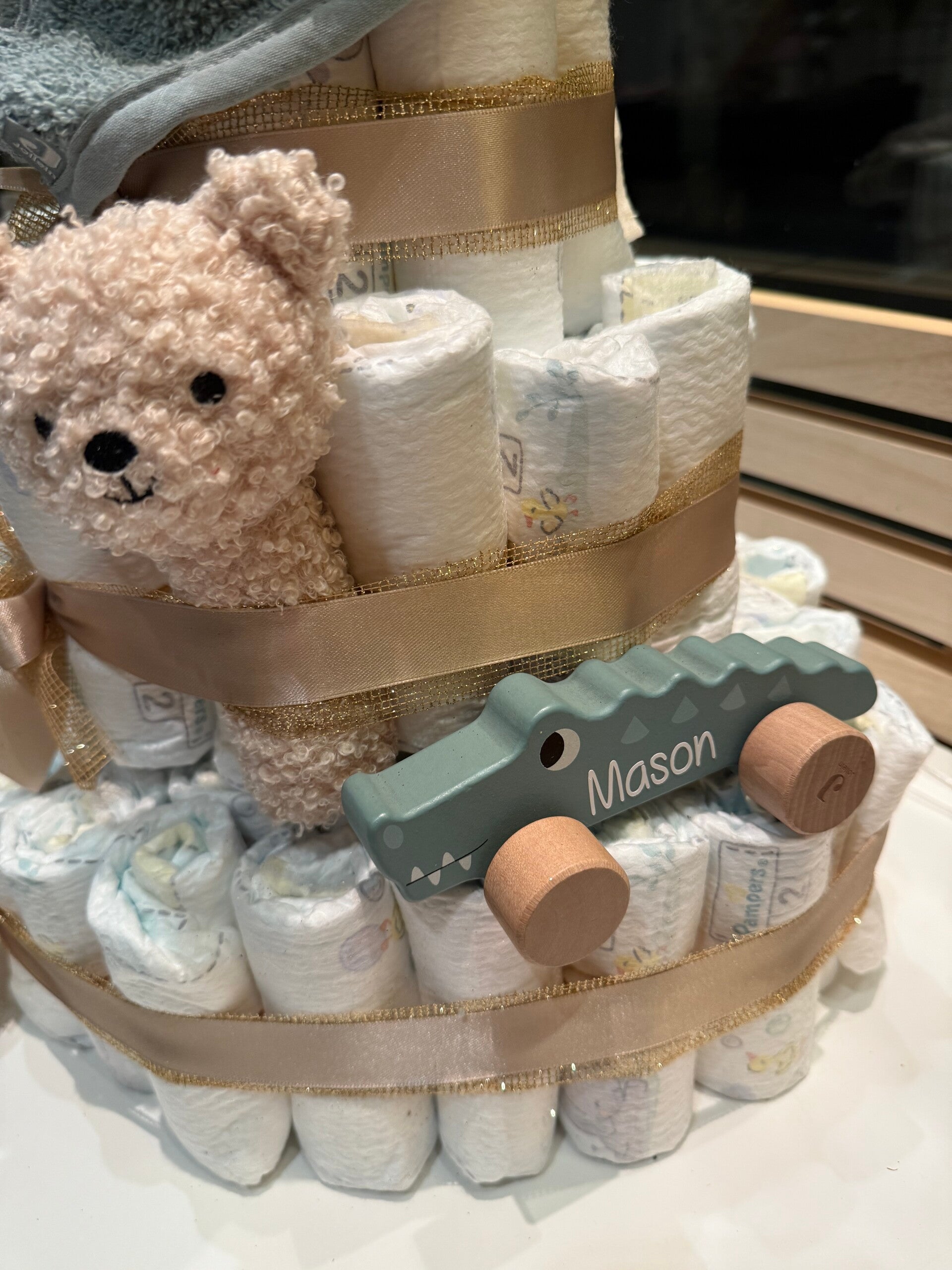 Iedere luxe luiertaart wordt met liefde met de hand gemaakt en zorgvuldig verpakt. Klaar om te schitteren op jouw feest.