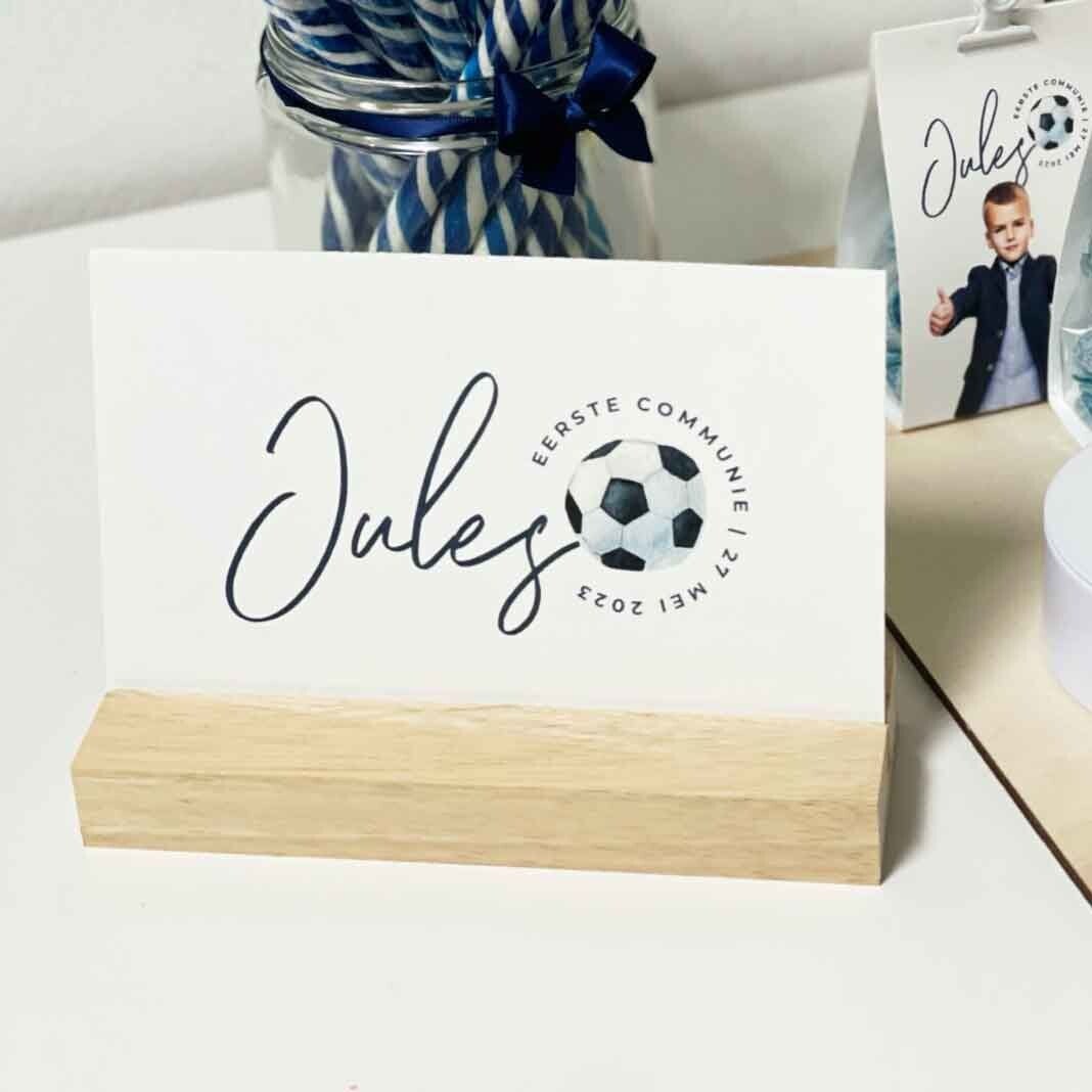 Deze extra brede handgeschaafde houten kaarthouder is de ideale basis voor het presenteren van een foto, uitnodiging of geboortekaartje.