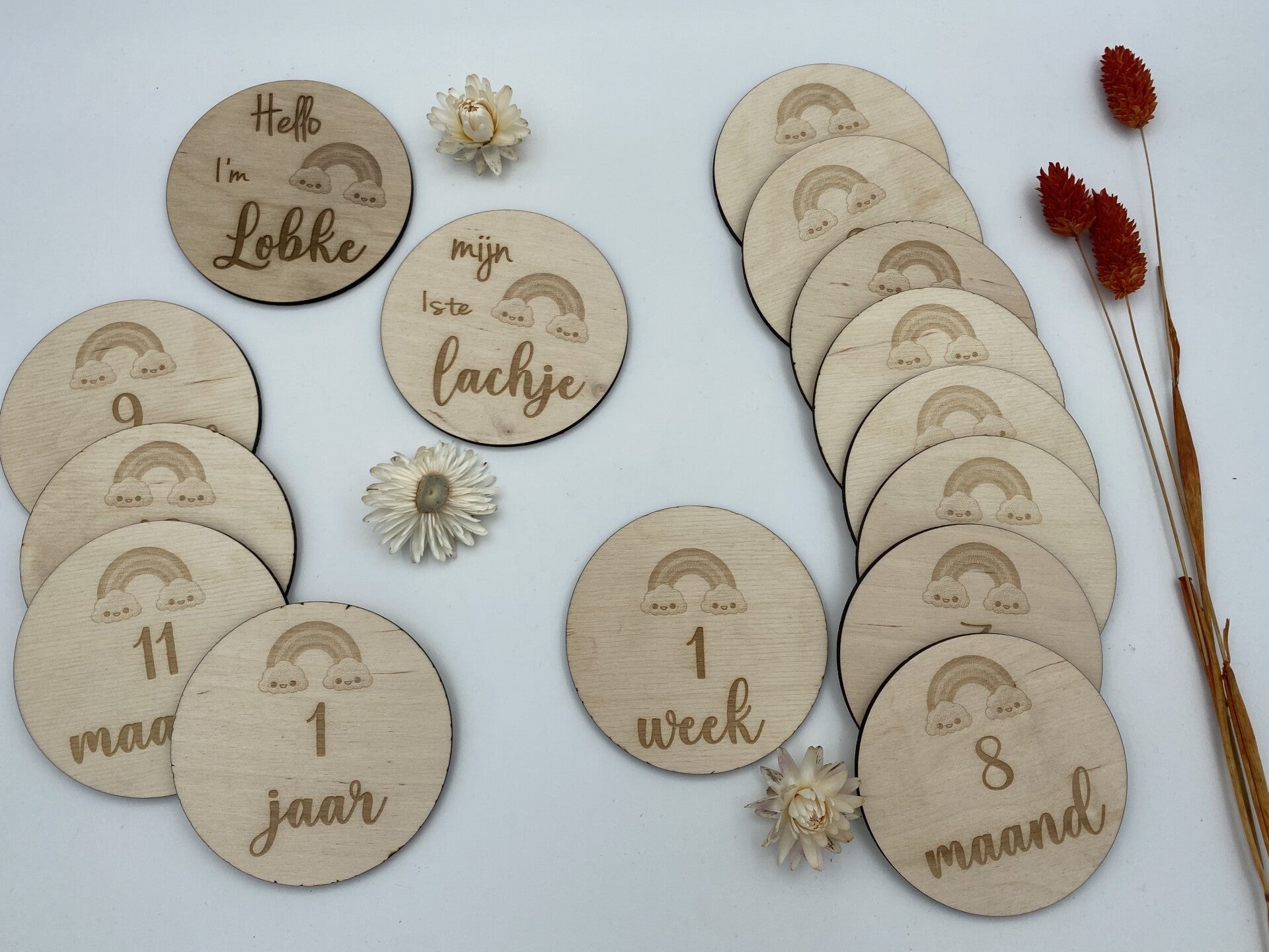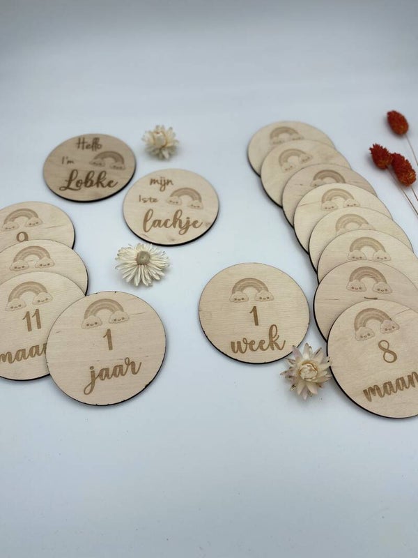 Dit setje van 15 kaartjes heeft een diameter van 9,50cm en 3 mm dik.
