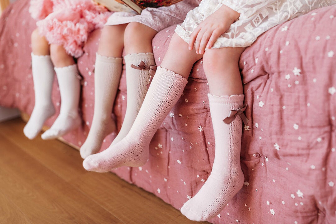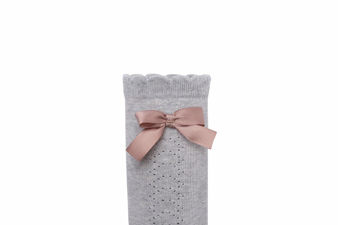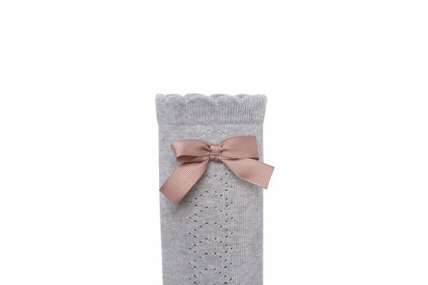 Deze elegante kniekousen met een satijnen strikje zijn een must have voor iedere kleine meid. Door hun zachte kleur, passen ze op vele outfits. Ze zijn verkrijgbaar in 1-3 jaar of 4-6 jaar.