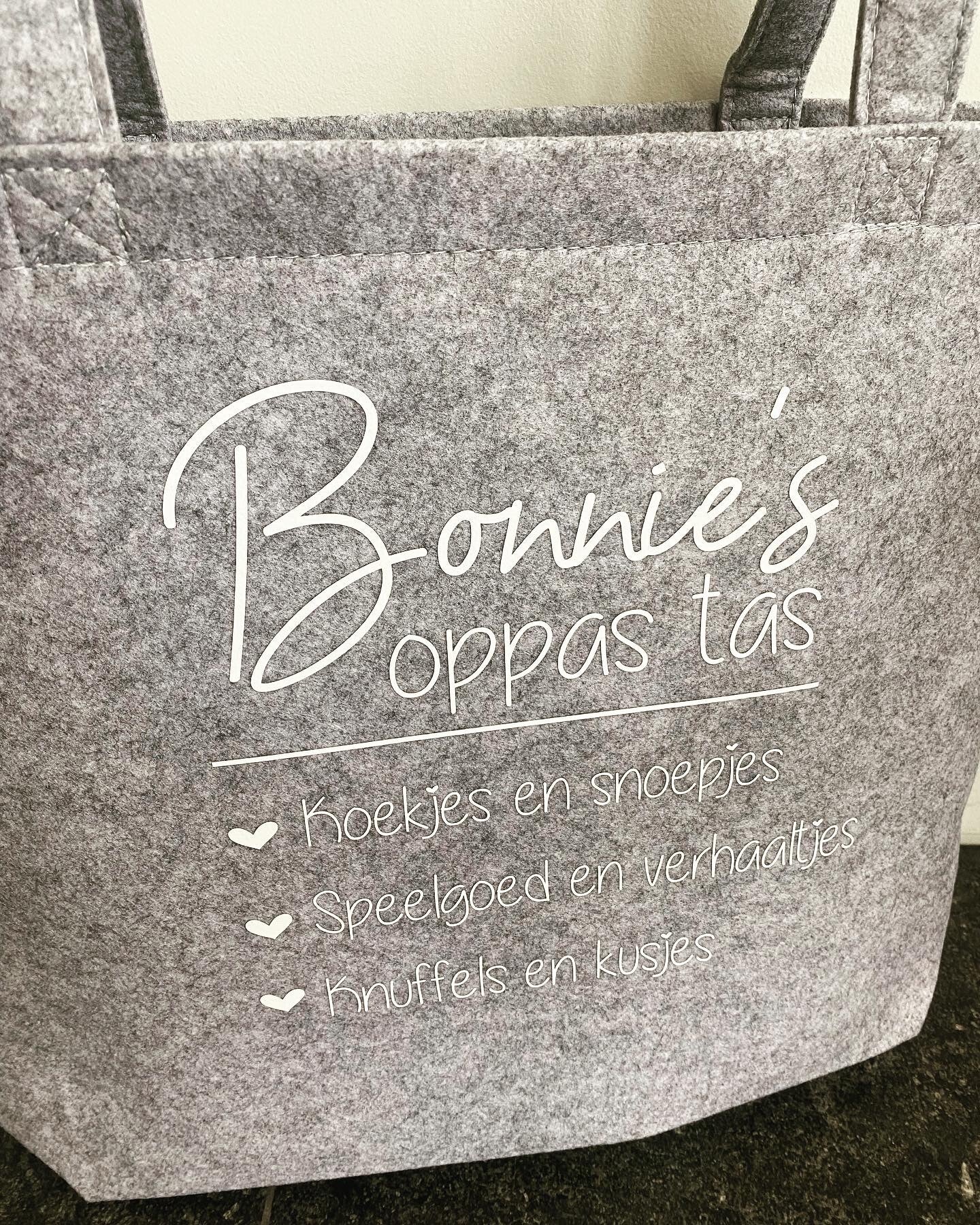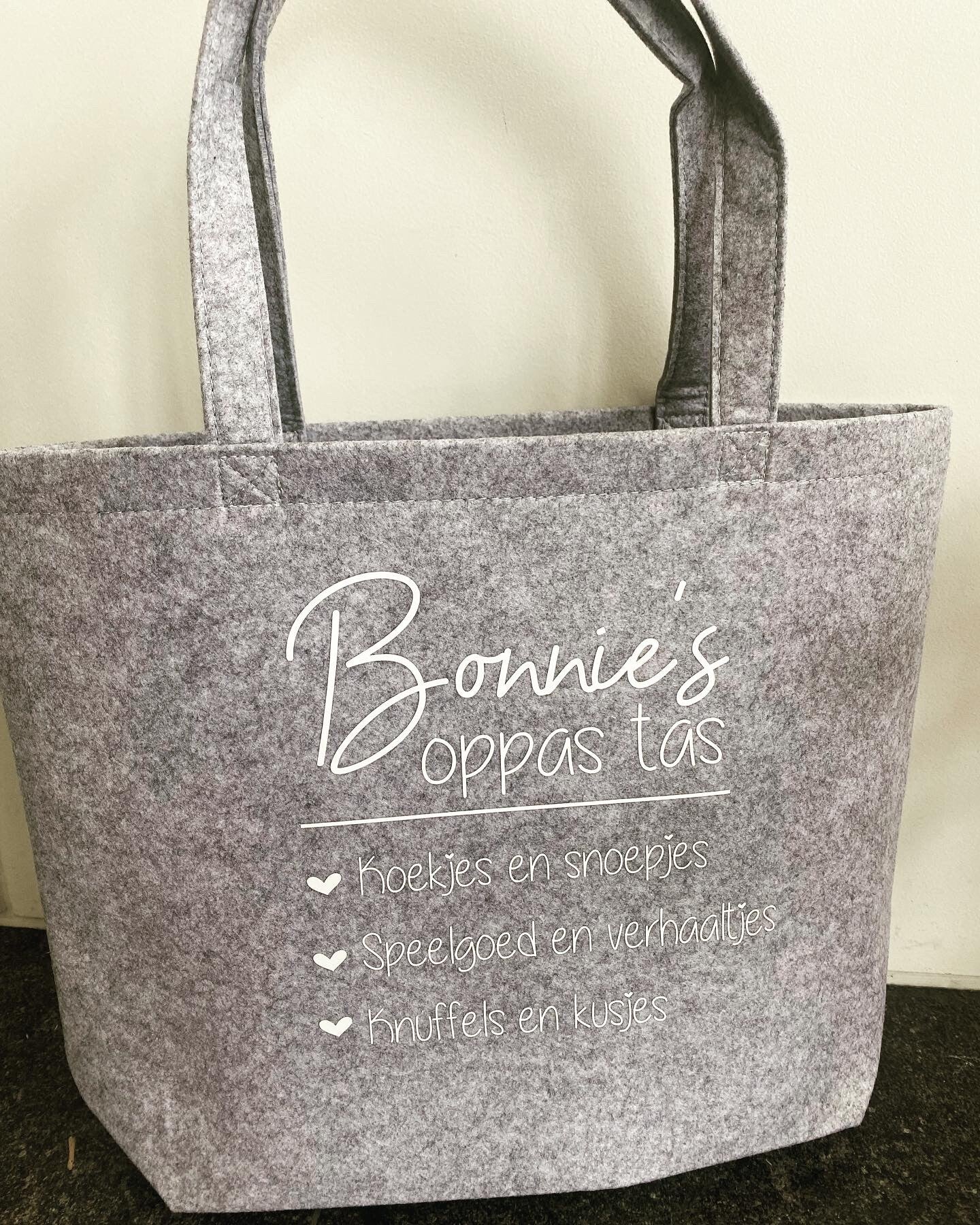 Vilten shopper met lange draagriemen. In de hand te dragen of over de schouders.