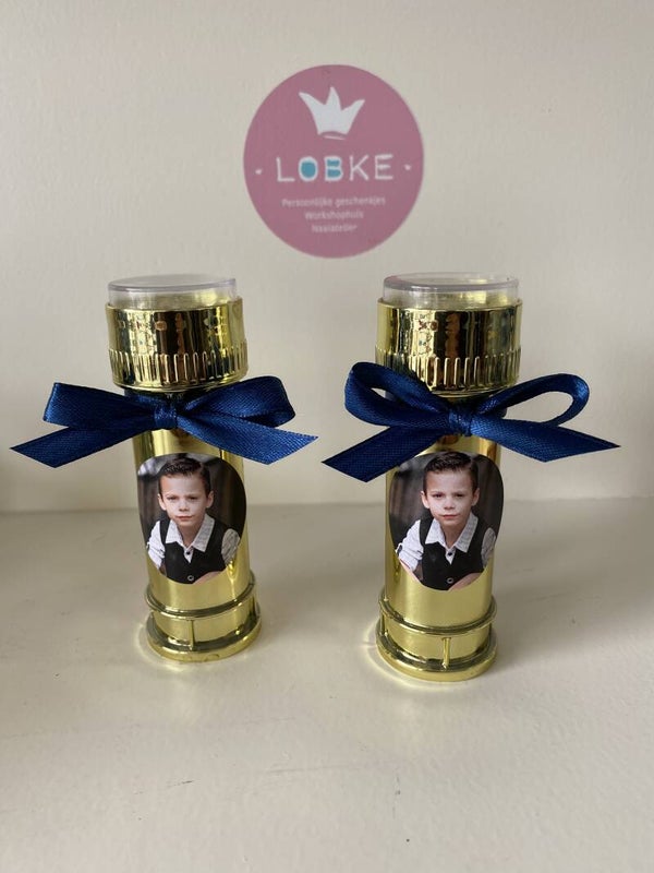 Deze bellenblazers kan met sticker of wikkel afgewerkt worden. Leuk voor de kindjes.