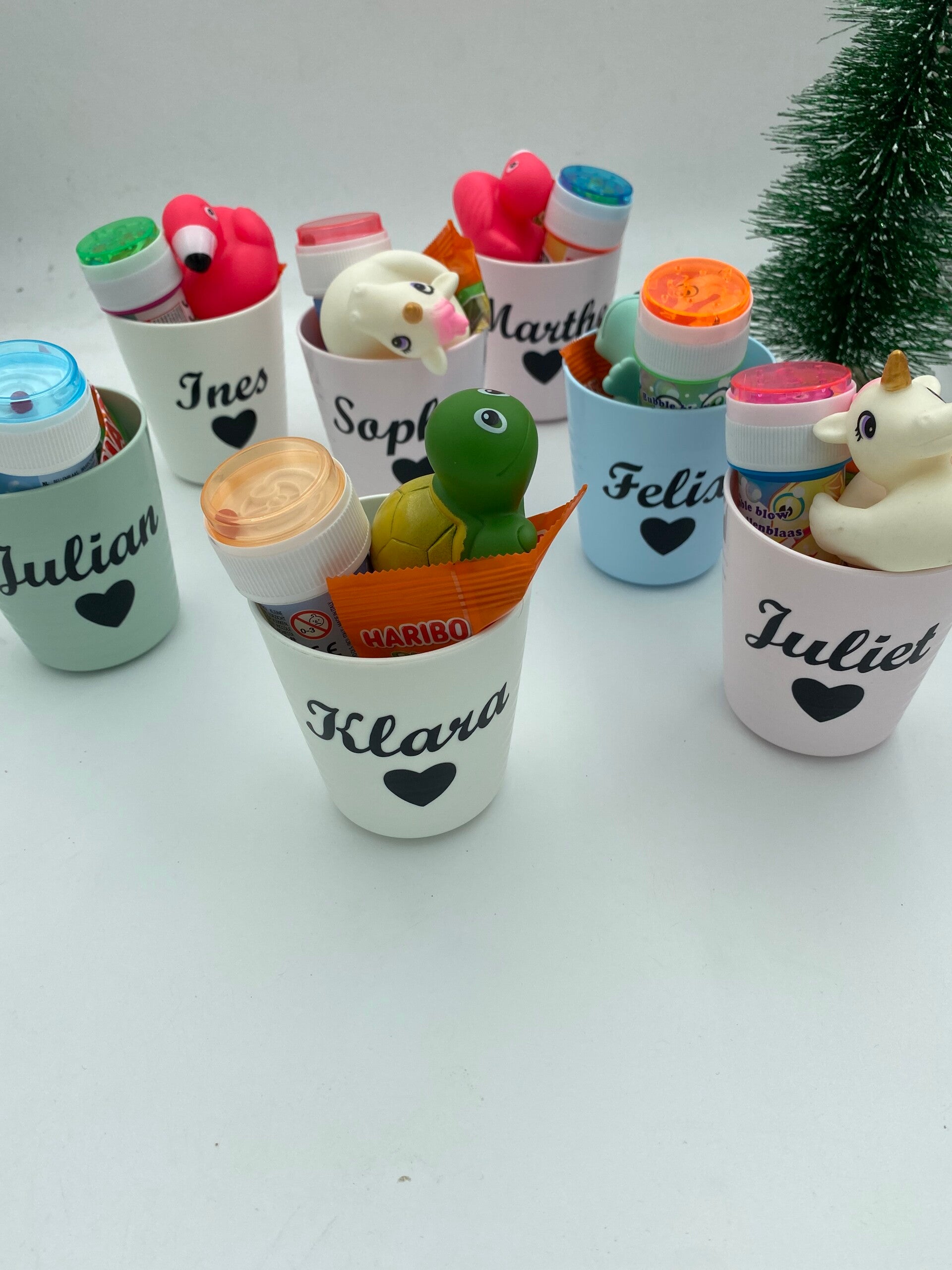 Deze bekers kan je bestellen gevuld. Wat zit er in? - een zakje snoep
