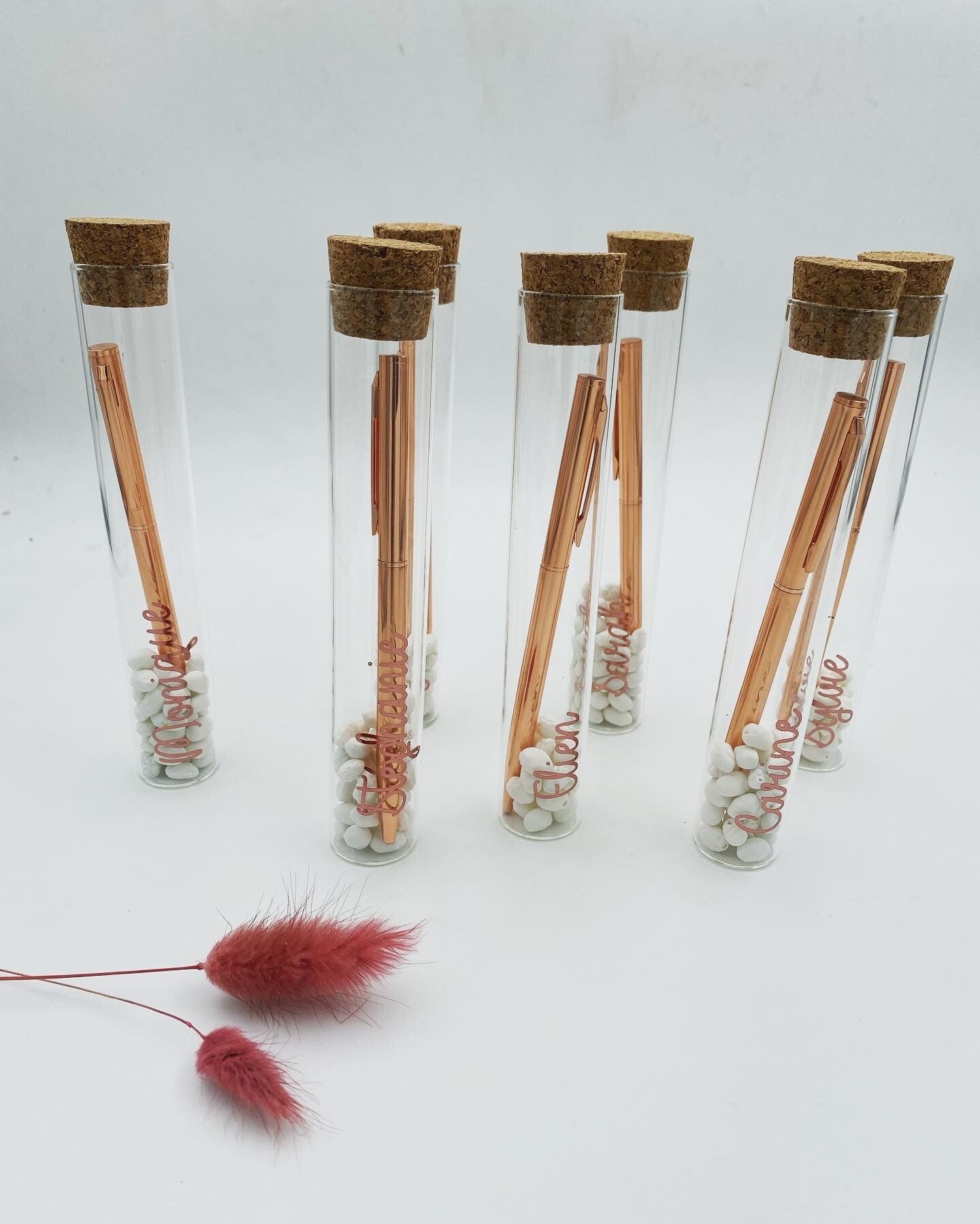 De balpen kan eventueel gepresenteerd worden in een glazen proefbuisje met kurk (15cm hoog).