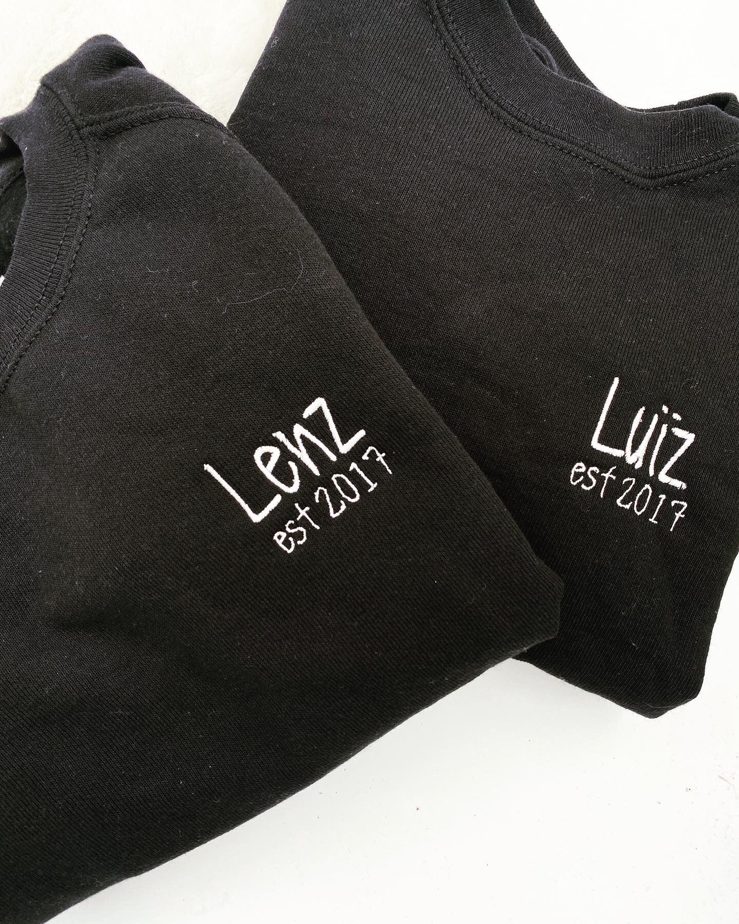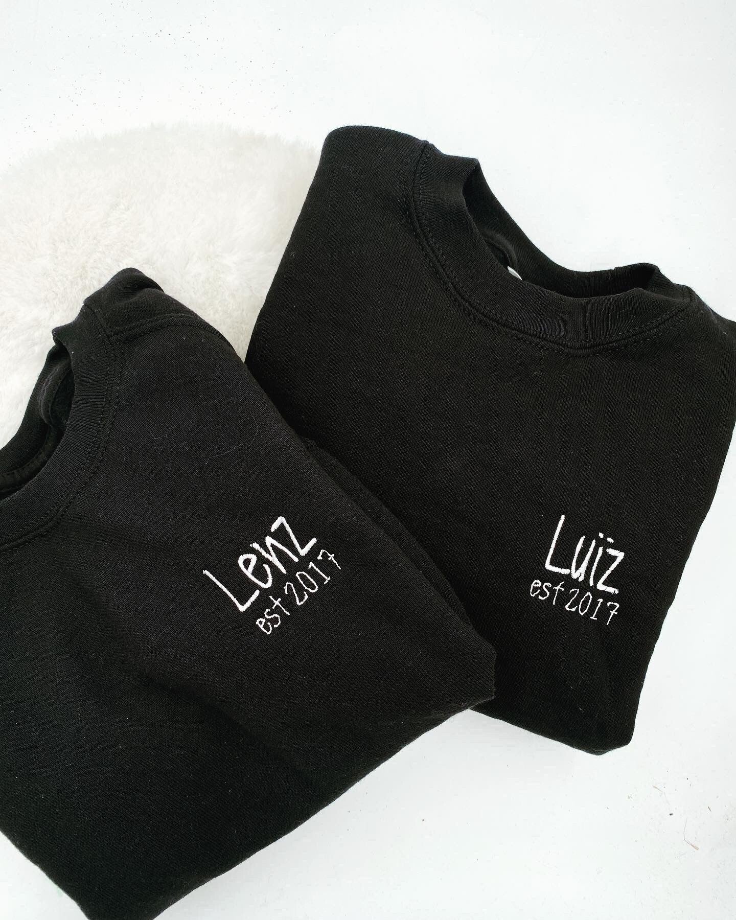 Personaliseer dan hier je eigen matching sweaters. Wij borduren ze met liefde! ♥️