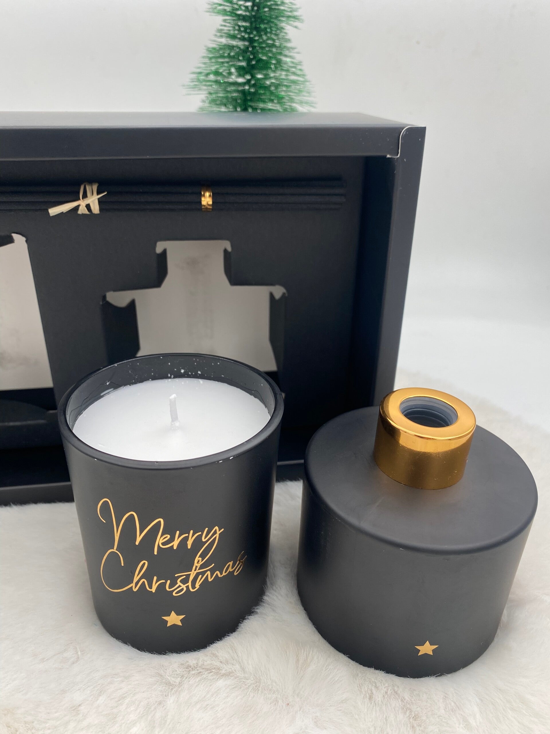 Een mooi geschenk setje bestaande uit een huisparfum en een geurkaars verpakt in een mooie box.